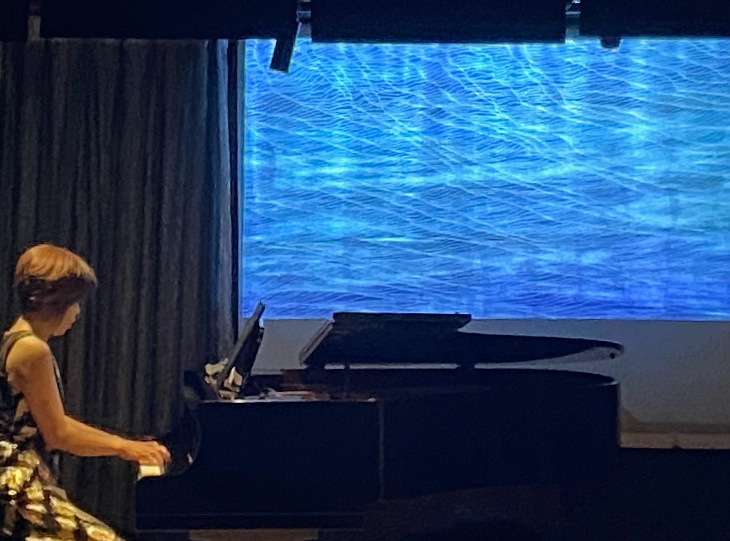 Helen Lin in concert playing Philip Glass' Piano Etudes with my painting projected onto the stage.