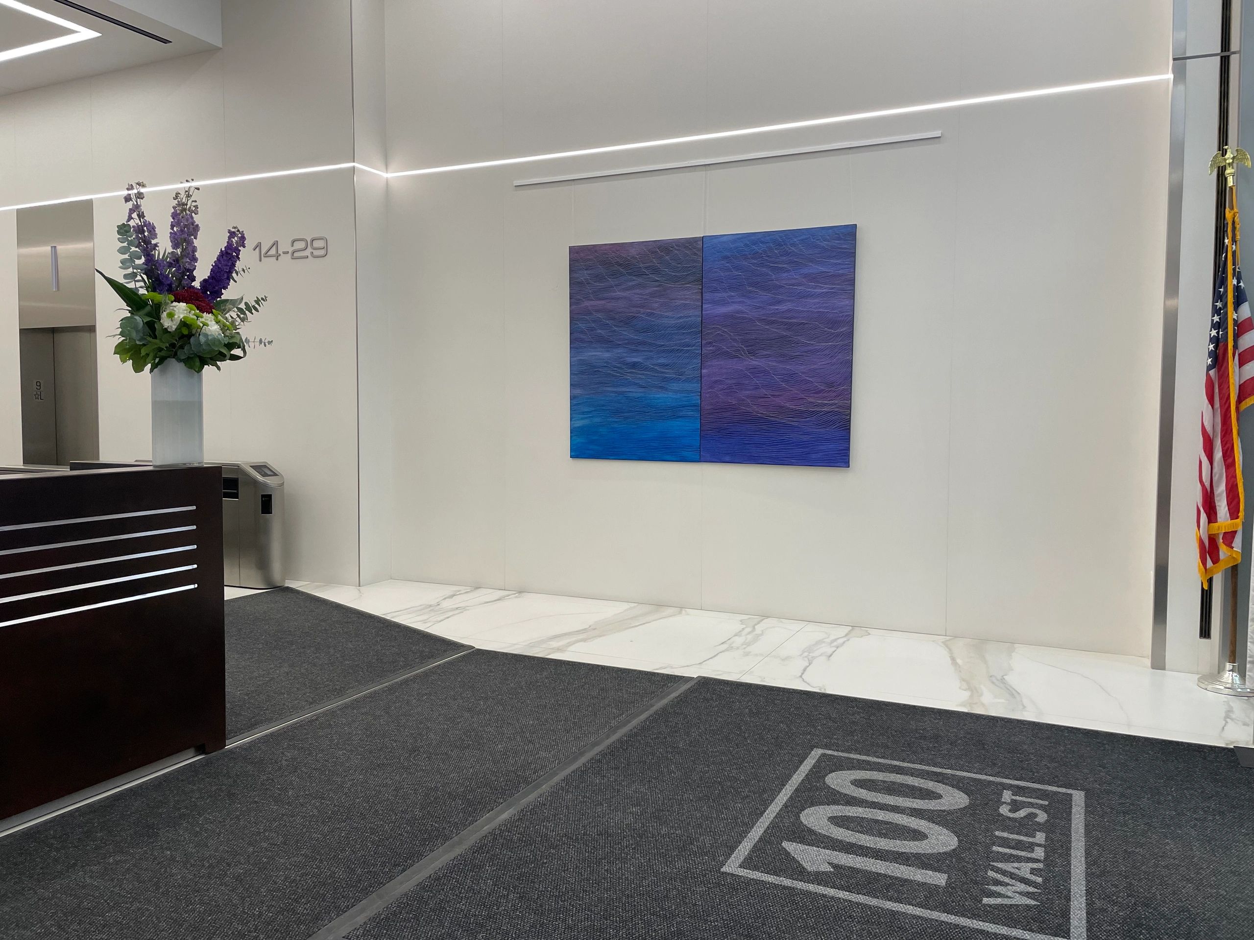 My paintings have been selected for 100 Wall Street. Two diptychs from my abstract Libretto series are on public view in the lobby, a third Libretto is in a private lounge upstairs.