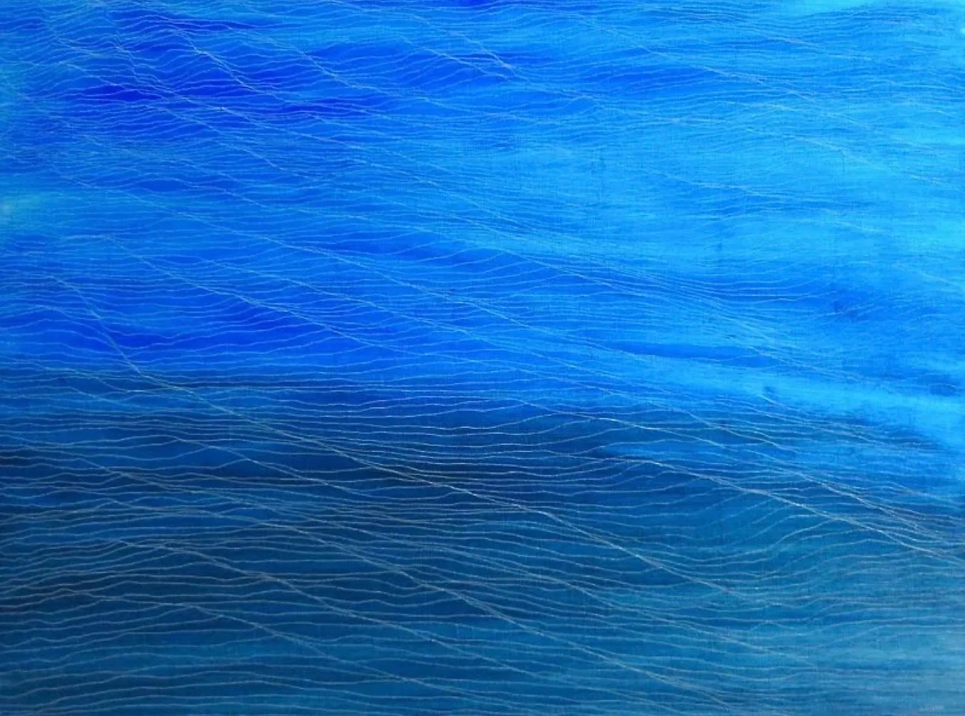 Loung: Water Marks Libretto #AQ, aluminum leaf, acrylic on canvas, 60" x 80"